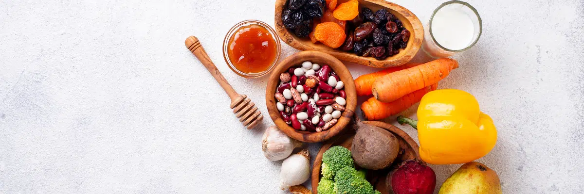 Sรถรถ palju kaunvilju (kikerherned, aedoad, lรครคtsed, herned), tรคisteratooteid (kaerahelbed), pรคhkleid ja seemneid (linaseemned, chia seemned), puuvilju (รตunad, ploomid, pirnid) ning kรถรถgivilju (artiลกokid, apteegitill, spargel, sibulad, mustjuured). Need toidud sisaldavad prebiootikume, mis on soolestiku bakterite toiduks.