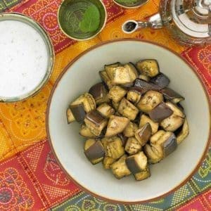 Что Вам нужно: 2 x баклажана Морская соль Нахрини с травами 4 столовые ложки оливкового масла немного свежемолотого черного перца 1 x лимон 150 г