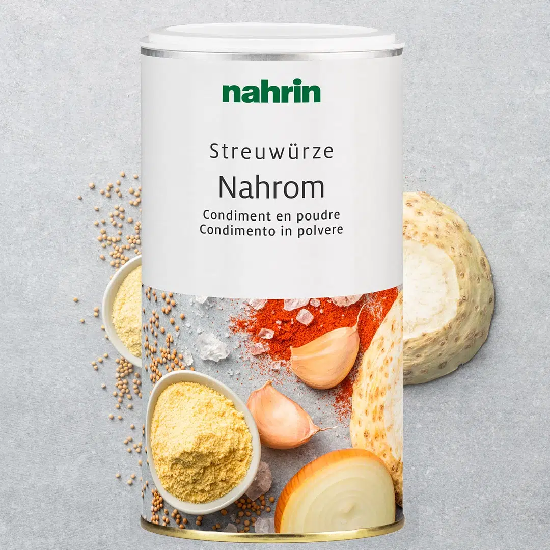 Прекрасно подходит для улучшения вкуса любых готовых блюд вместо поваренной соли. Благодаря своему удивительному составу, сухая овощная приправа Nahrom позволит вам не только полностью отказаться от поваренной соли, но и станет вашей любимой приправой. По сравнению с традиционными смесями приправ Nahrom содержит меньше соли!