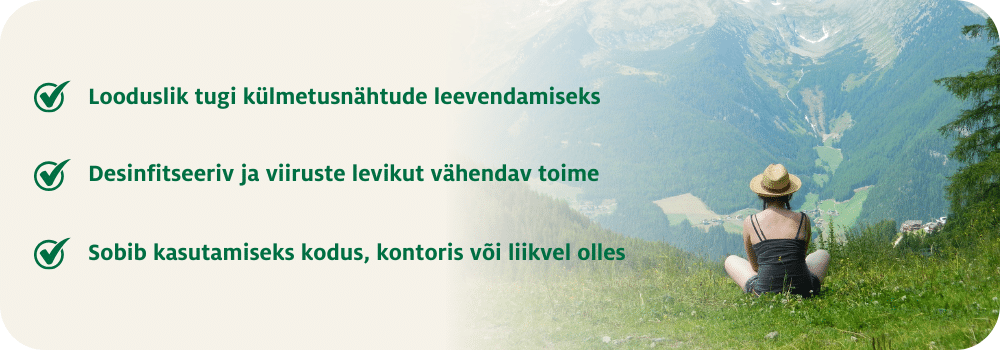 Alpiõlide sprei kergelt desinfitseeriv mõju aitab vähendada külmetuse levimist.