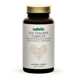 Toidulisand. Koensรผรผm Q10 kompleks koosmรตjus E vitamiini, punase veini pulbri ja viinamarja lehtede ning seemnete ekstraktiga toetab kompleks sรผdame…